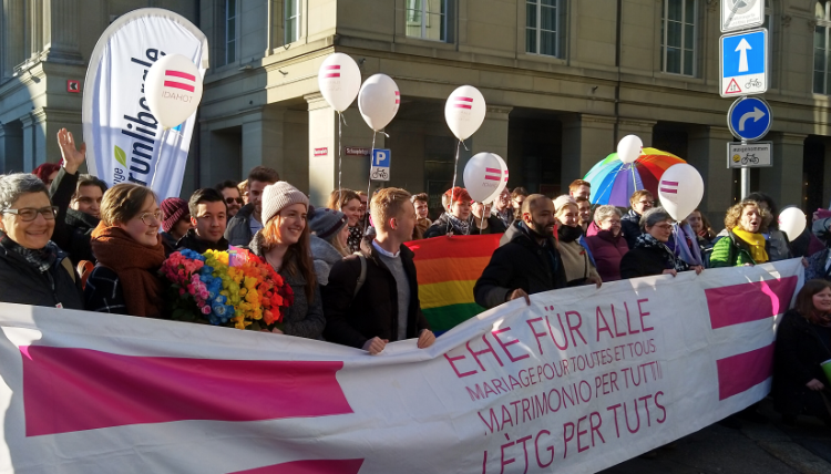 Vor der Besprechung der Kommission haben queere Organisationen am Donnerstagmorgen – passend zum Valentinstag – eine Aktion vor dem Bundeshaus lanciert, um auf die wegweisende Entscheidung aufmerksam zu machen. Über 120 Demonstrierende forderten tatsächliche Gleichstellung im Rahmen der «Ehe für alle».