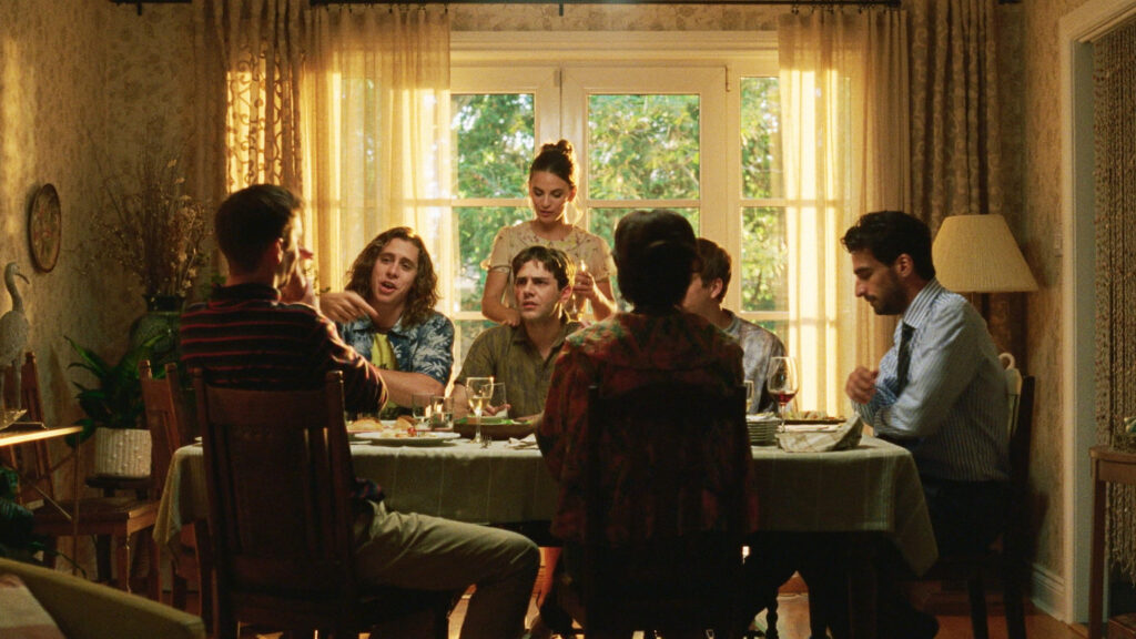 Mit ihrem erweiterten Freundeskreis ziehen sich Matthias und Maxime in ein entlegenes Ferienhaus zurück, trinken und rauchen, stimmen in das Grölen der anderen Jungs mit ein, die sich gegenseitig hochnehmen und gegenseitig rempeln. Die ausgelassene Atmosphäre bringt eine Körperlichkeit mit sich, die alltäglich ist, durch die genaue Beobachtung der Kamera hier auch in ihrer Homoerotik zu Tage tritt.