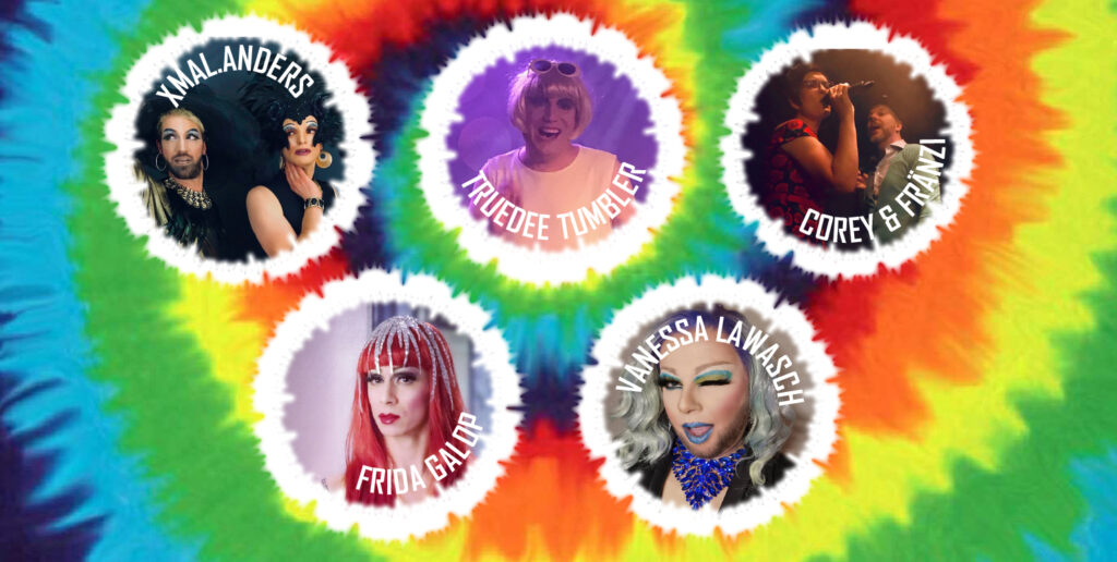 Dragshow mit Vanessa LaWasch, Frida Galop, Truedee Tumbler, Xmal.anders und den Karaokesängern Corey & Fränz