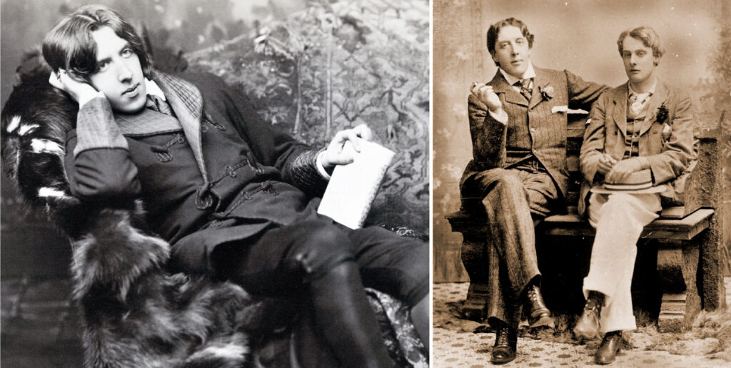 Oscar Wilde 1882 und mit Lord Alfred Douglas, genannt Bosie im Jahr 1894
